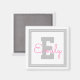 Cute Framed Name & Monogram | Light Grey & Pink Magnet