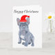 This editable Christmas card features my portrait of a cute little French Bulldog puppy, wearing a red Santa hat. The text is fully editable should you wish to personalise it.