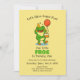 Invite family and friends to celebrate your child’s big day with this adorable frog birthday invitation. Featuring a cheerful frog holding a cupcake and balloon on a bright yellow background, this fun and playful design is perfect for kids’ parties.