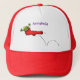 Cute frog in a red sock jumping cartoon trucker hat