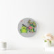 cute frog, mushrooms and butterfly round clock
