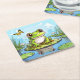 Cute Frog on a Lily Pad Cute Personalized Square Paper Coaster