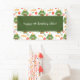 Add a custom touch to your child's birthday party with this adorable personalized party banner. Banner has a pattern of a green frog wearing a birthday party hat and next to a balloon and cake. There's also the text smile and space for a custom message, such as happy birthday and your little one's name and age.