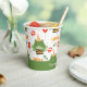 Add a custom touch to your child's birthday party with this adorable personalized paper cup. Paper cup has a pattern of a green frog wearing a birthday party hat and next to a balloon and cake. There's also the text smile and space for a custom message, such as happy birthday and your little one's name.