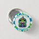 Cute birthday boy button. An adorable frog in a birthday hat holding a gift with a cute polka dot background in blue and green. Edit the text in the personalize area.