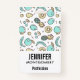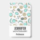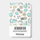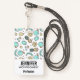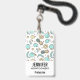 Name badge with a cute fruit pattern line drawing style. Light green and yellow colours. A fun summery design.
