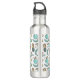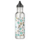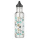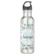 Water bottles with a cute fruit pattern line drawing style. Light green and yellow colours. A fun summery design. A white circle layered over top with you name and monogram initial inside.