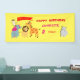 A cute happy birthday banner for a kids birthday party. A sweet adorable jungle animal cartoon illustration with fun and colourful, elephant, lion, hippo, giraffe and cheeky monkey. Remember to change the text to add a name or message or clear if not required at no extra cost.