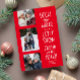 Cute fun three photo red white Christmas Holiday Card