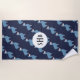 Cute Funny Blue Llamas with Initials Beach Towel