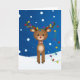 Featuring the cutest cartoon you've ever seen, with Christmas lights tangled in his antlers and sleigh bells around his neck on a snowy Christmas eve. Customize the inside with your own text and make this cute Christmas card yours.