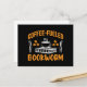 Funny and cute postcard for every book lovver who likes to drink coffee featuring the quote 'Coffee fuelled bookworm'. For every bookworm and member of the bkwrm club perfect gift idea for birthday or christmas.