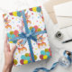 Cute Funny Corgi with Balloons Hat Stars Birthday Wrapping Paper