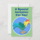 Cute funny crowing rooster cartoon illustration invitation
