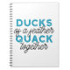 Cute ducks puns quote design about duck, feather, and quack. "Ducks of a Feather Quack Together". Cute gift for anyone.