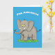 Cute funny elephant with bird on trunk cartoon card