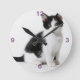 Cute Funny furry kitten black and white cat Round Clock