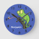 Cute funny green happy chameleon lizard cartoon round clock