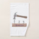 Cute, funny hammer and nails cartoon illustration bath towel set