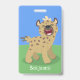 Cute funny hyena laughing cartoon illustration badge