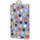 Cute Funny Kitty Cat Faces Pattern Blue Hip Flask