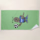 Cute funny Komodo dragon playing soccer cartoon Beach Towel