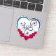 A cute and funny love sticker could feature a cartoon couple with oversized hearts for heads, striking silly poses while holding hands. Above them, a playful caption like "I'm nuts about you!" adds a humourous touch, while little doodles of chocolates and flowers surround them, enhancing the whimsical vibe. Perfect for sharing those sweet, lighthearted moments in a relationship!