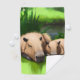 Add a bit of whimsy to your golf game with this funny golf towel, which features AI-generated artwork of a mother capybara and one of her offspring indulging in a siesta in the sunlit grass by a river.
