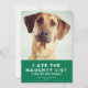 This funny holiday photo card features a festive green background with the greeting "I ate the naughty list (you're welcome)" and one photo. This design accommodates a single square photo on the front of the card. On the reverse side is a red and white diagonal stripe background, to which you can add another photo and/or additional text by selecting the "edit using design tool" option. You can even remove the pattern if you like... And all of the colors can be customized by you!