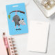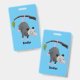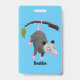 Cute funny opossum hanging from branch cartoon badge