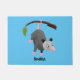 Cute funny opossum hanging from branch cartoon doormat
