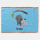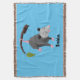 Cute funny opossum hanging from branch cartoon throw blanket