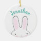 Cute funny peeking bunny cartoon personalized kids ceramic ornament