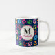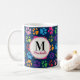 Cute Funny Pet Paw Print Colourful on Navy Blue Monogrammed Coffee Mug. Cheerful dog or cat print pattern in pretty colours, yellow, pink, blue, green, hot pink, purple. Great gift for dog or cat lovers, dog mom's and cat mom's.