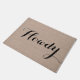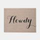Cute, funny, simple, modern Howdy modern typography font hi hipster humour quote on a faux burlap jute rustic chic doormat.