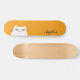 Cute Funny Simple White Cat Yellow Monogram Skateboard