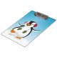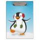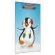 A cute winter illustration: a penguin with gloves and earflap in a good mood is walking in the snow.