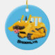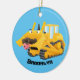 Cute funny yellow bulldozer cartoon character ceramic ornament