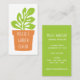 Advertise and promote your gardening and garden shop with this fun business card template. Design shows a cute potted plant. Easily customize with your stores contact info and hours.