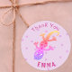 This sticker comes with cute little rainbow gecko lizard on a pink background, text Thank you and a kids name. It`s perfect for children celebrations. You can personalize the sticker by changing the name and also change the font, size and the colour of the text.