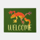 Welcome mat with colourful gecko cute lizards original Australian art illustration by artist Sacha Grossel featuring these cute reptiles on an eco green simple natural background. Colourful and vibrant. Perfect for a nature or wildlife lover.