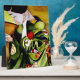 with original art design from watercolour painting by Sacha Grossel of Japanese Geisha in traditional style olive green kimono. Inspired by traditional oriental style art, the kimono shows intricate detail in a bright, colorful design.