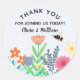 This cute and whimsical baby shower favour sticker design features flowers and a bee and can be personalized with the parent(s) name(s). The perfect whimsical woodland 'thank you' favour stickers for your coed shower.