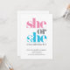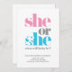 This cute Gender Reveal Invitation "She or He, what will baby be" is a fun way to invite friends and family to your gender reveal party. Personalize it with your event's details.