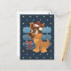 Design with illustration of cute German Shepherd with a present on a starry night dark blue background, illustrated by Radka2D