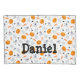 A whimsical design of ghosts, pumpkins and spiders in orange, black and grey. Easily personalize the name with just a few clicks.