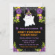 Cute Ghost Floral Halloween design with a black polka dot background and black dripping glitter
