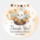 A sweet and spooky Halloween thank you sticker featuring an adorable ghost in a pumpkin, surrounded by soft autumn florals and a festive bunting banner. Ideal for sealing party favour bags, packaging Halloween treats, or adding a seasonal touch to customer appreciation gifts. Personalize with your name or message to make each thank you extra special for fall celebrations.
