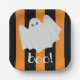 Cute Ghost Halloween Orange and Black Stripes Paper Plate