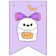Make your child's halloween party unforgettable with these adorable coquette ghost Halloween themed bunting banner flags. Features a coquette ghost holding a pumpkin, and a colourful bat. It’s time for a spooky sweet halloween celebration! All elements are editable. You can personalize this design by clicking on "Personalize this template" or if you wish to change the font, colours or arrange the design elements in a different way you can click on "Edit using Design Tool".
